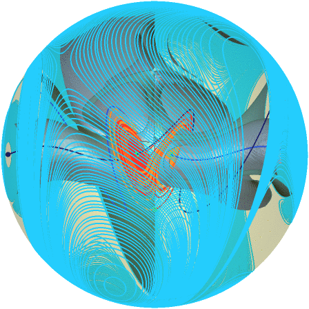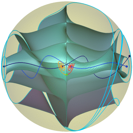 Animation with Figure 4: Intersection of the Lorenz manifold for \(\varrho = 18.0\) with the sphere \(S_R\) for \(R = 69.062\). |