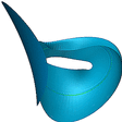 The animated gif shows the unstable manifold rotating about the z-axis, centered at B (3.4MB). |