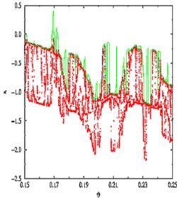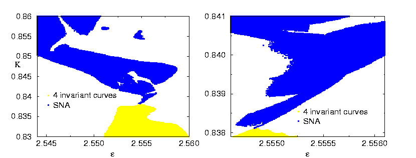 The bifurcation sequence in region I in Figure 15 is as in Figure 14 (left). We enter other regions by crossing bifurcation curves. The sequence of bifurcations in regions II-IV is shown in Figure 16. Finally, in region V we get the bifurcation sequence of Figure 14 (right).