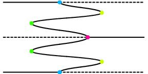 (smooth) supercritical pitchfork bifurcations. Shown are invariant