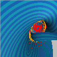 Another animated gif shows how the stable manifold grows, while focusing on the helix that is being formed around the z-axis (1.8MB). Smaller version (638KB). |