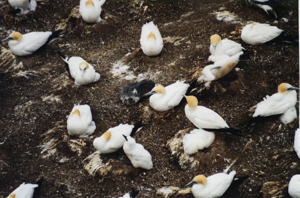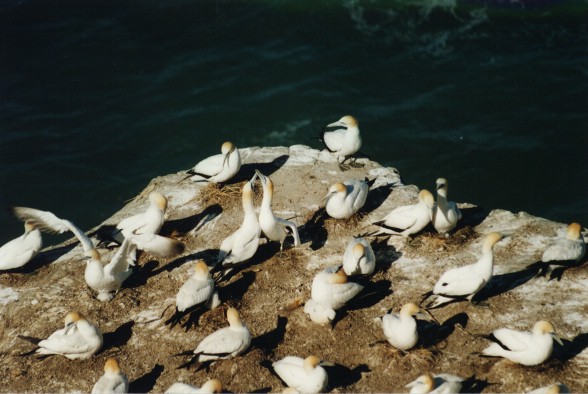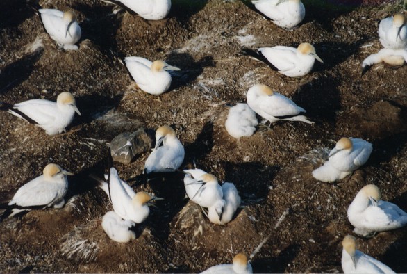 Many of the gannets are incubating their eggs. Below the southern platform I saw at least half a dozen eggs lying between nest sites. I wonder what might have happened. (See also observation of 18 January 1999.)