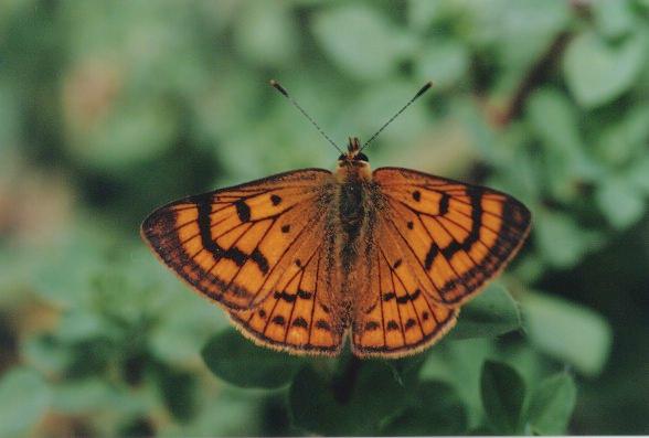 I witnessed how chicks can end up lying on their back (see 20/12, although this does not explain how one gets under a stem of flax): an adult was trying to land and misjudged the situation, clean bowling a chick and bumping into the guarding adult. The chick fell off its mound into the ditch, lying there on its back for a short time until it found its feet. Needless to say that the hapless adult got its share of pecks; just as well its own site was only a couple of mounds away. The group photo: chick no. 3 gets a feed. I also caught a group of 5 gannets returning from a fishing expedition. Out at sea there were several groups (they formed, drifted, and disintegrated; some birds joining, some leaving throughout) of up to 40 birds on the water. They were either having a bath with a fair bit of wingflapping and splashing, or caught surface fish, or a bit of both - I don't know for sure. They shallow-dive when they join the group, and at times there were the odd forward lunges over a couple of metres or so (I thought that must mean catching a fish, but could not ascertain one way or the other). Some of the birds just rested, with their beaks tucked between the wings. There was also a good number of common copper butterflies along the path near the northern platform. Here is a (white-fronted) tern in flight, bringing home the bacon. |