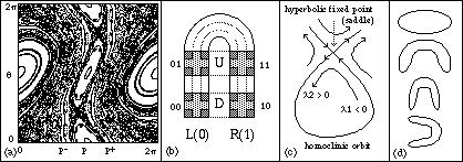 mixing process. (c) Homoclinic (self-inclined) hyperbolic fixed point, (d)