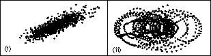 in the event that the singular values si have an abrupt order of magnitude decrease after sj then the rotated vectors can be reduced to their first j components. This method can sometimes unveil low-dimensional or quasi-periodic dynamics with perturbing noise as opposed to high-dimensional noise, as illustrated in fig 7 in which rotation using singular decomposition reduced the dimension from unsaturated (d2>7) to about 2.6 (Albano et. al. 1986b).